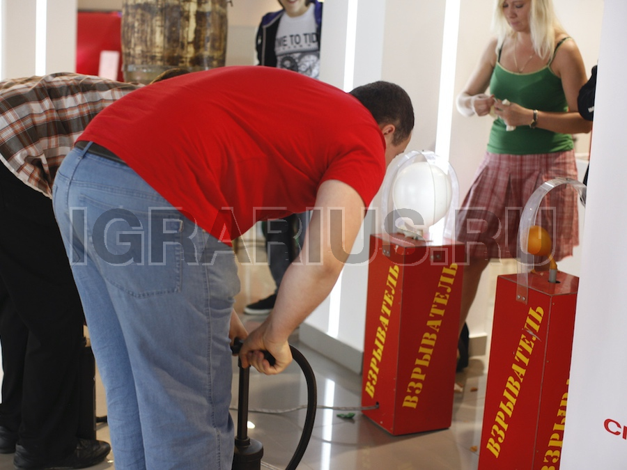 Командный аттракцион, в котором с охотой участвуют и взрослые и дети. Динамичная эстафета с взрывами шаров победителей. Задача взорвать как можно больше шариков за определенное время.