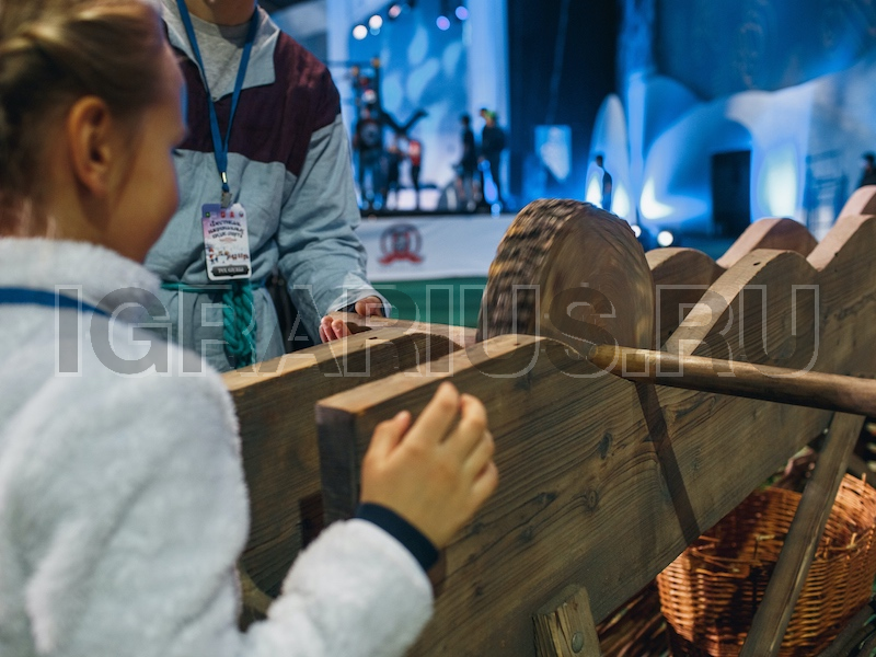 «Шлифовальный круг» - игра на координацию движений. Участнику необходимо раскрутить круг и рассчитать силу своих действий таким образом, чтобы круг остановился в последней ложбине на своём пути