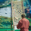 У каждого игрока есть 5 попыток чтобы провести шар по сложному игровому полю и попасть им в лузу необходимого цвета. Задача очень непростая, хотя все выполнимо, было бы желание.