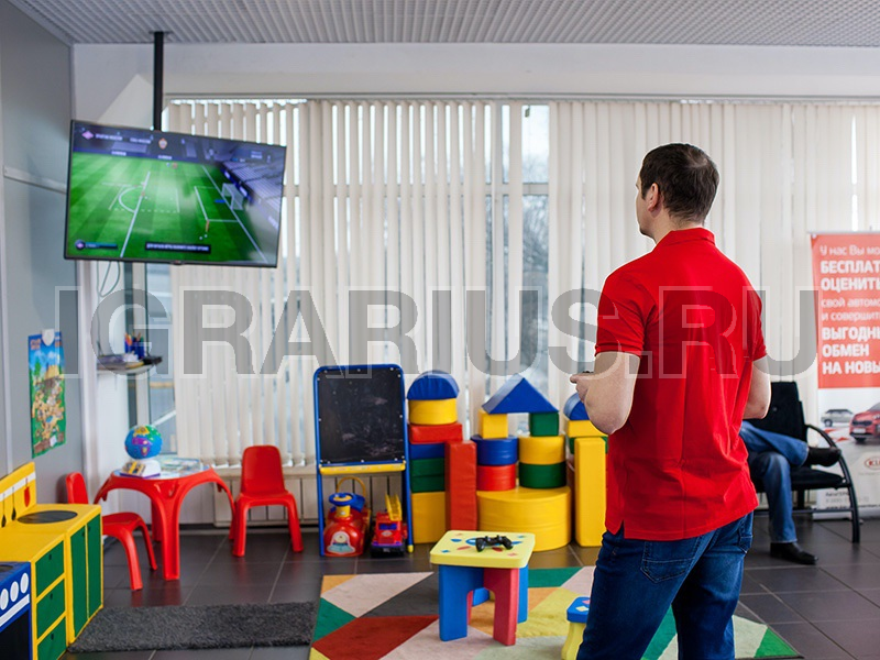 Вашему вниманию предлагается площадка "Интерактивный футбол". С помощью специального сенсора улавливающего движения вы сможете принять участие в футбольном матче со звездами мирового футбола. В игре одновременно может принимать участие два человека. Аттракцион «Интерактивный футбол» идеально подходит для презентаций в автосалонах или корпоративных мероприятий в банкетных залах или офисах. Комплект: ТВ плазма 51", стройка для телевизора, приставка xBox 360 Kinekt, комплект спортивных игр для kinekt.