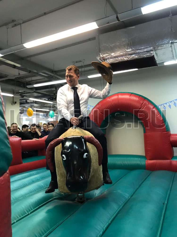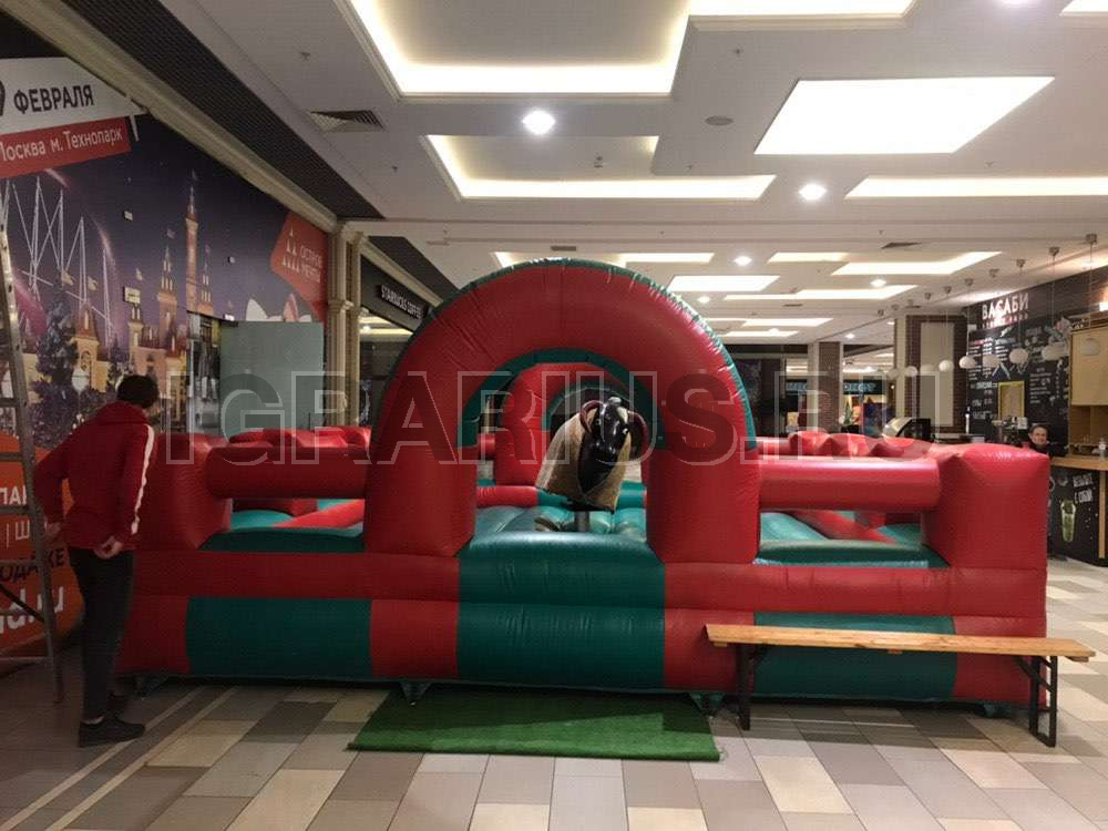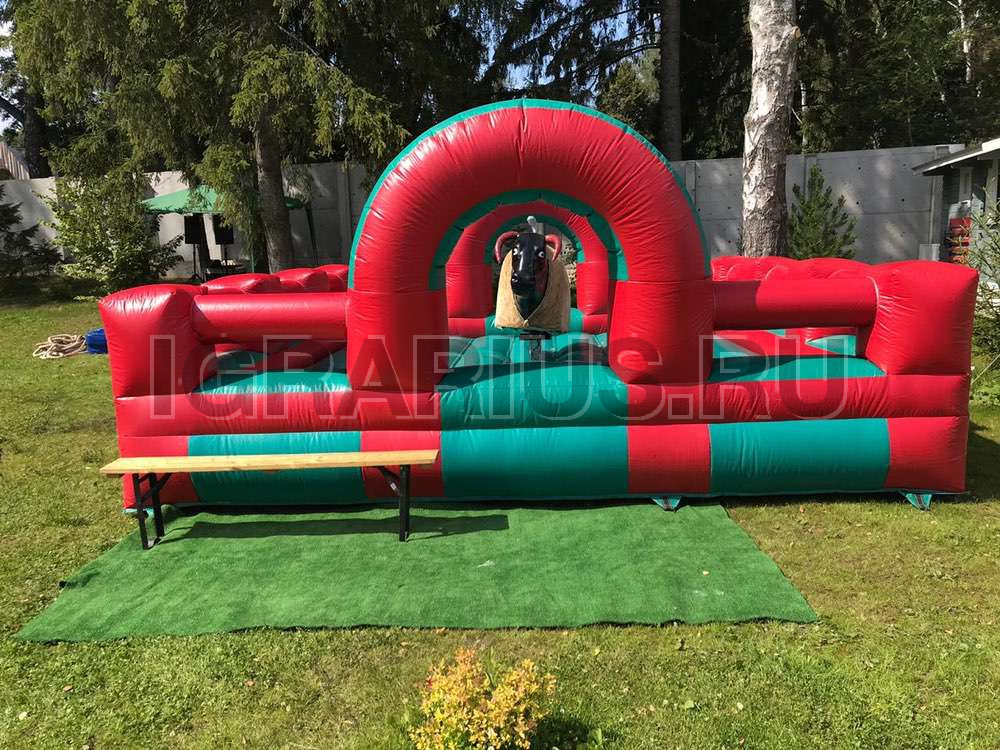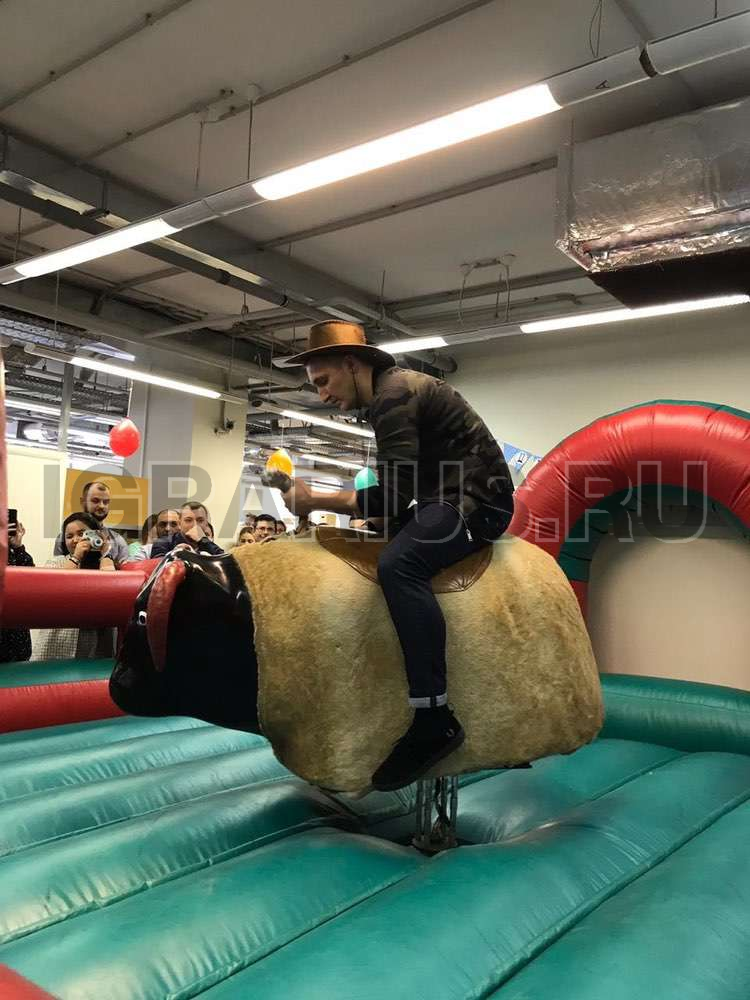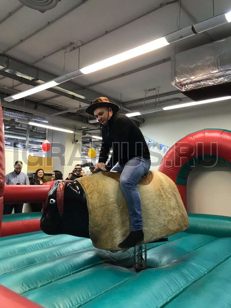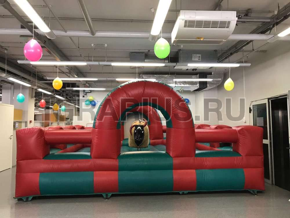Вашему, внимаю предлагается классический аттракцион бык родео на новой оригинальной квадратной подушке зелено-красной расцветки. Остальные технические характеристики и норов нашего Бычка остались на том же уровне и усидеть на нем будет по-прежнему нелегко.