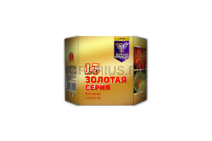 | ЭФФЕКТ | Синие звезды раскрываются золотыми коронами в золотом мерцании; золотые кометы раскрываются золотыми коронами в серебряном мерцании; в финале одновременный залп золотых комет раскрывается золотыми трещащими кокосами в красных мерцающих пионах. |