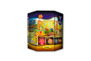 | ЭФФЕКТ | Двухуровневый эффект: на нижнем уровне бурак золотых искр с белым мерцанием; на верхнем уровне золотые кометы раскрываются двухцветными пионами. В финале залп трех зарядов. |