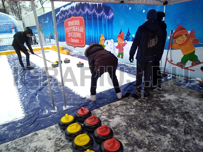 Кёрлинг - один из самых популярных, простых и увлекательных видов зимнего спорта. При желании, можно организовать целое соревнование по этому виду спорта. В игре участвуют две команды. Участники по очереди берут снаряды за специальную ручку и запускают их по льду точно в цель. Участник может подбить или полностью вытолкнуть снаряд противника из цели. Остальные напарники могут корректировать траекторию движения при помощи уникальных щитков. В результате трения образуется тонкая ледяная пленка. Таким образом можно изменять скорость и направление броска. Проведите запоминающийся зимний праздник играя в эту увлекательную игру. Мы уверены, вам она понравится!