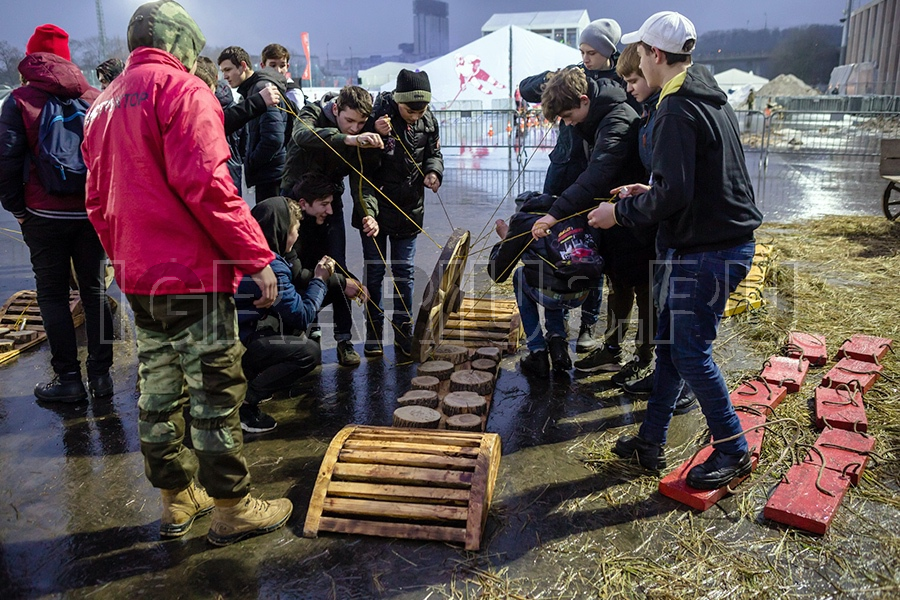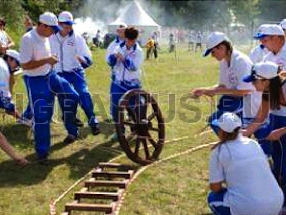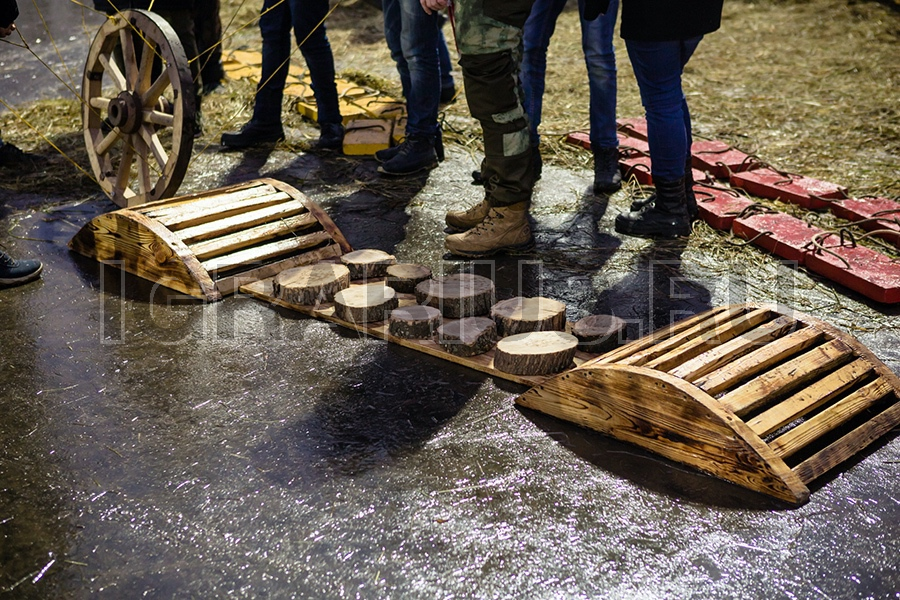 Каждый участник держится за специальную ручку и должен прокатить колесо из пункта А в пункт Б. Запрещается тащить или поднимать колесо. Задача участников прокатить колесо по всем этапам и преградам.