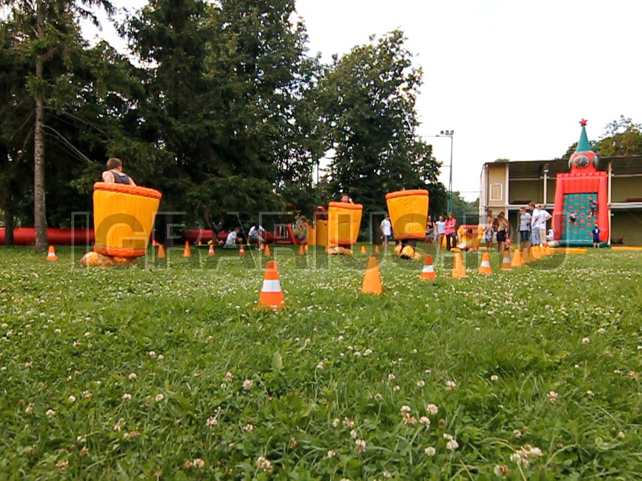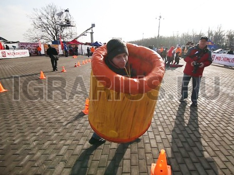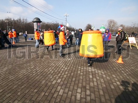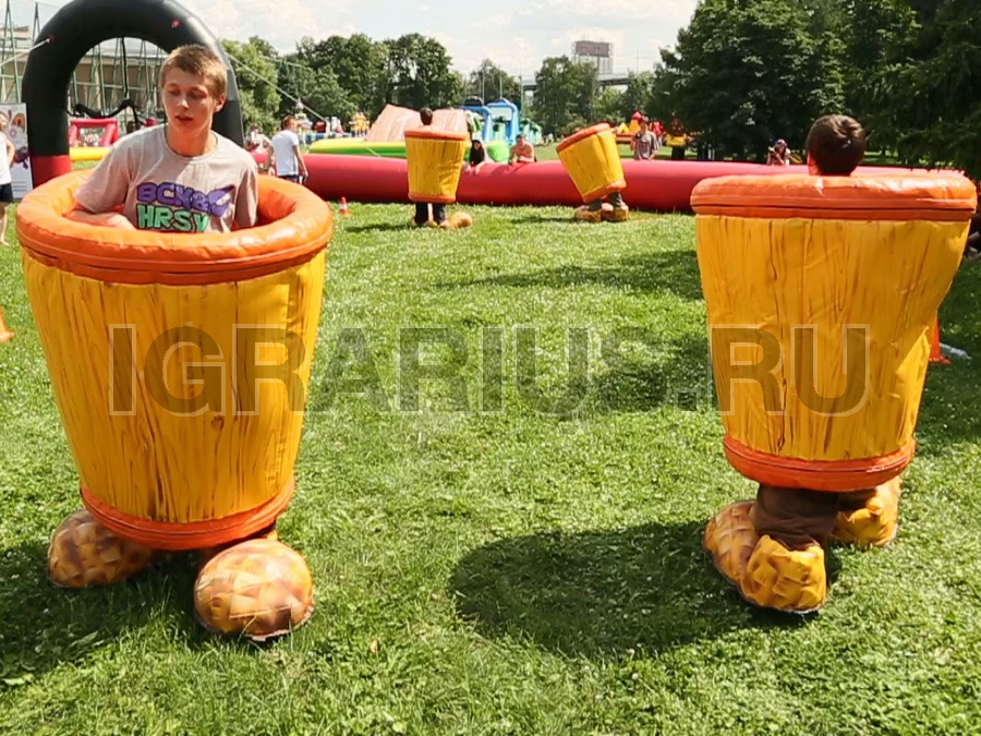 Отличный эстафетный конкурс в Cлавянском стиле – Ступы Бабы Яги. Участники влезают в ступы и бегут на перегонки – это только один из видов применения нашего креативного спортивного снаряда. Ступы можно использовать в качестве корзины для метания валенок – тем самым получив старославянскую баскетбольную игру, а так же для оформления площадки.