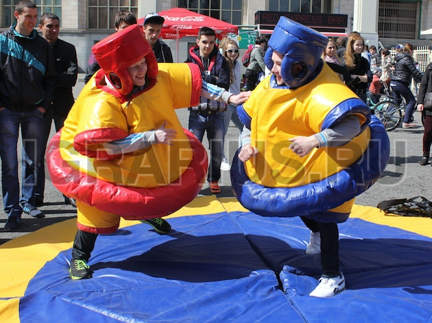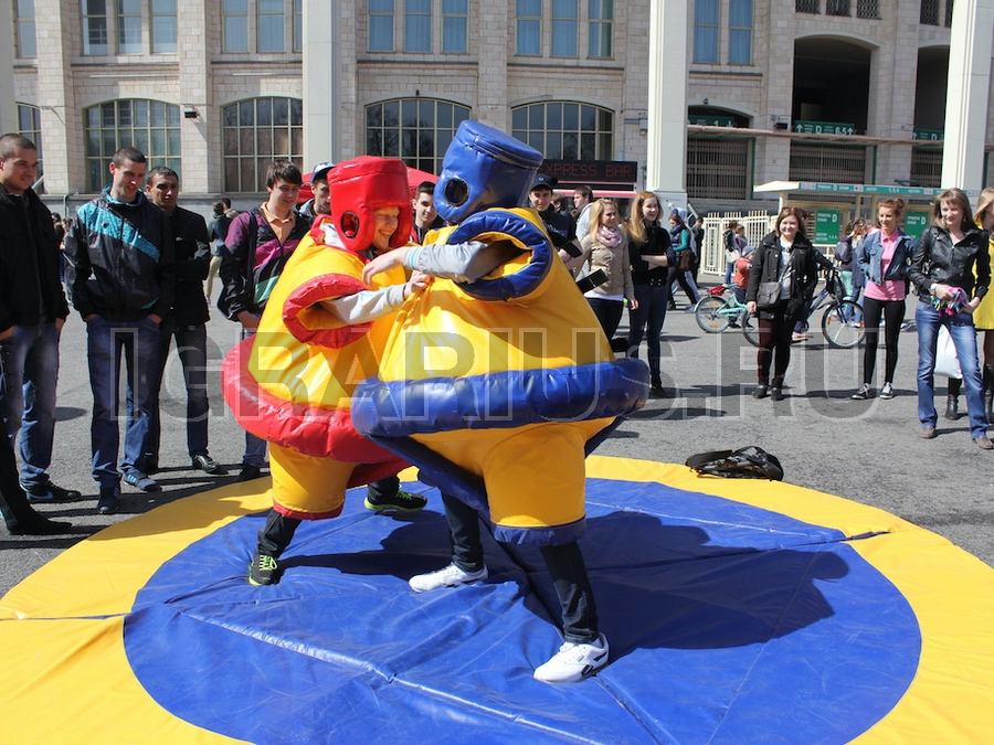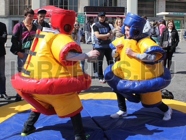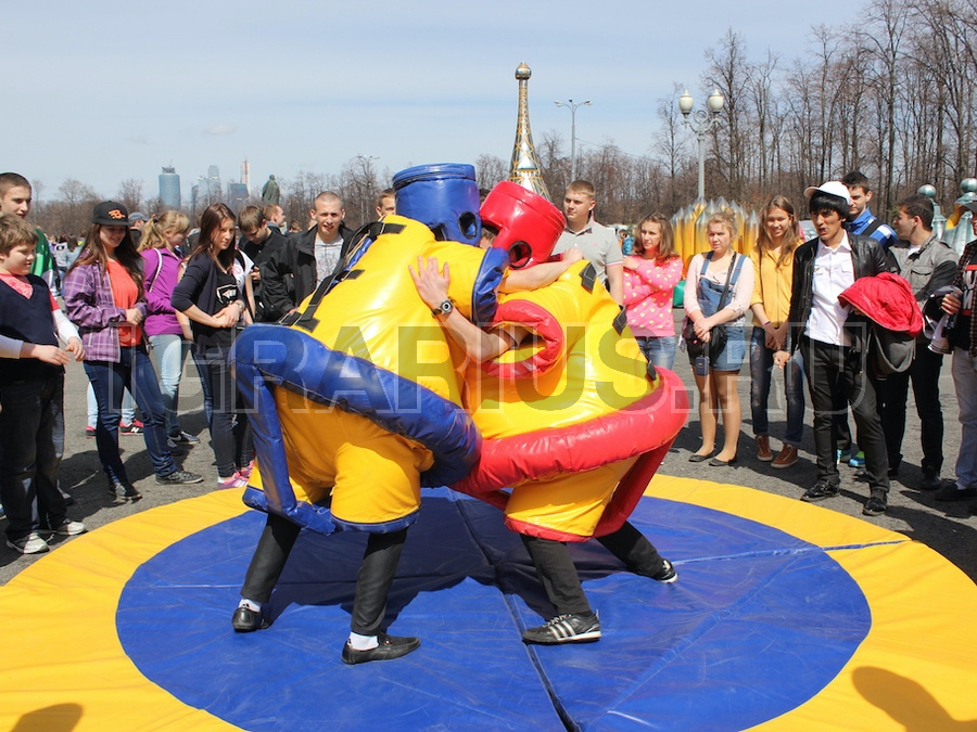 Все большую популярность набирают восточные развлечения и восточная экзотика. Вот и индустрия праздников и развлечений не стоит на месте и аттракцион сумо становится трендом сезона. Причем для этого Вам не придется выезжать в страну «восходящего солнца» и употреблять большое количество национальной пищи. Все проще: заходим на татами, надеваем специальный костюм, защитный шлем и вот вы уже настоящий борец сумо – любимец публики и пример для подражания.