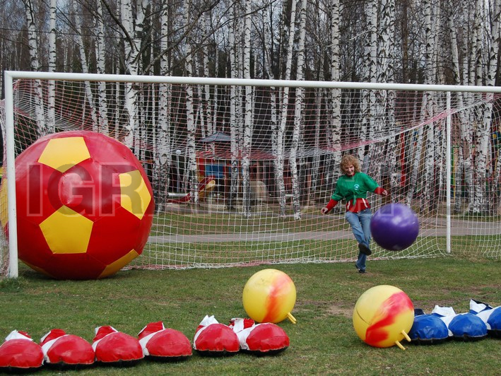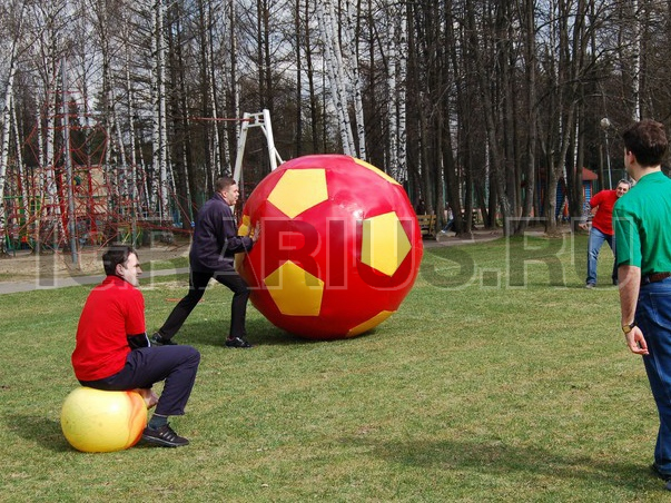 Не так просто забить гол, когда мяч по размерам больше любого из участников! Но не смотря на это, вы получите массу позитивных эмоций и от души повеселитесь! Эти мячи подходят для командных футбольных игр, футбола на автомобилях, комических футбольных эстафет. При желании можно предложить игрокам гигантские ботинки, а также организовать игру в ограниченном пространстве, воспользовавшись футбольной рамкой 10х20м