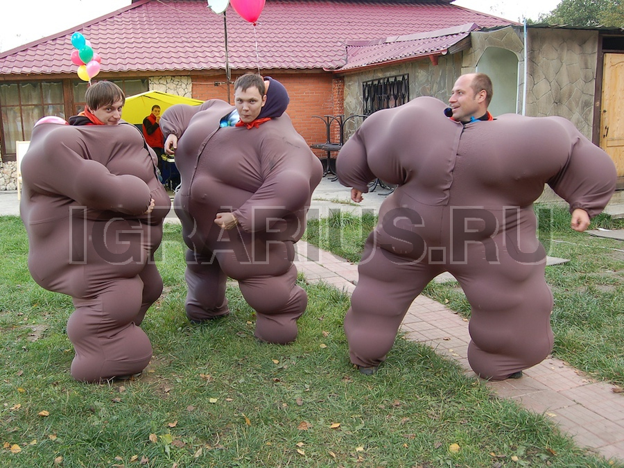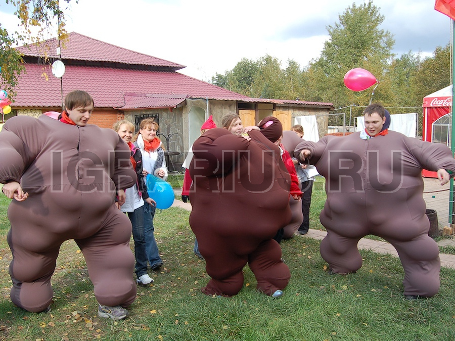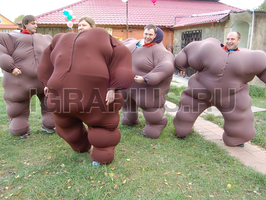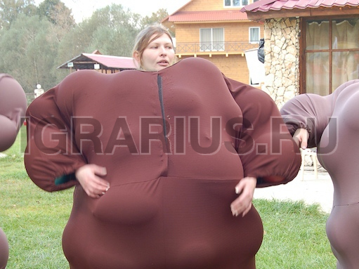 Отличное командное развлечение, в котором участвует максимальное количество игроков. Конкурс состоит из двух этапов: первый этап – работа команды: один игрок надевает бесформенный костюм, остальные участники надувают воздушные шары и наполняют ими костюм, получается огромный человек на которого без смеха не взглянешь. Второй этап зависит от вашего мероприятия – это может быть танец смешного БОЛЬШОГО человека!