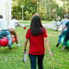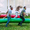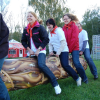 Снаряд в виде бревна идеален для эстафетных и спортивных мероприятий. Участники соревнования садятся на бревно верхом, хватаются за поручни, и в этой неудобной стойке они должны пробежать дистанцию от точки А к Б. В состязании участвуют две команды.