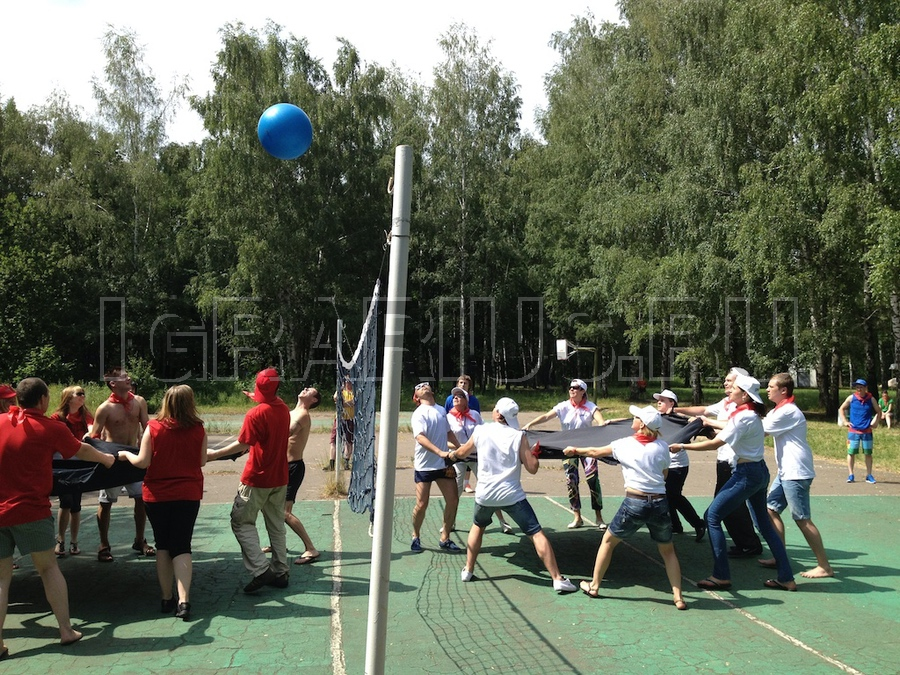 Волейбол – самая любимая, азартная и интригующая до последнего момента игра. Суть командного волейбола проста: участники команды натягивают специальное тканевое полотно, и этим полотном, не отпуская его и не трогая мяч руками, перекидывают большой мяч на сторону соперника. Побеждает та команда, которая меньше пропустит мячей.