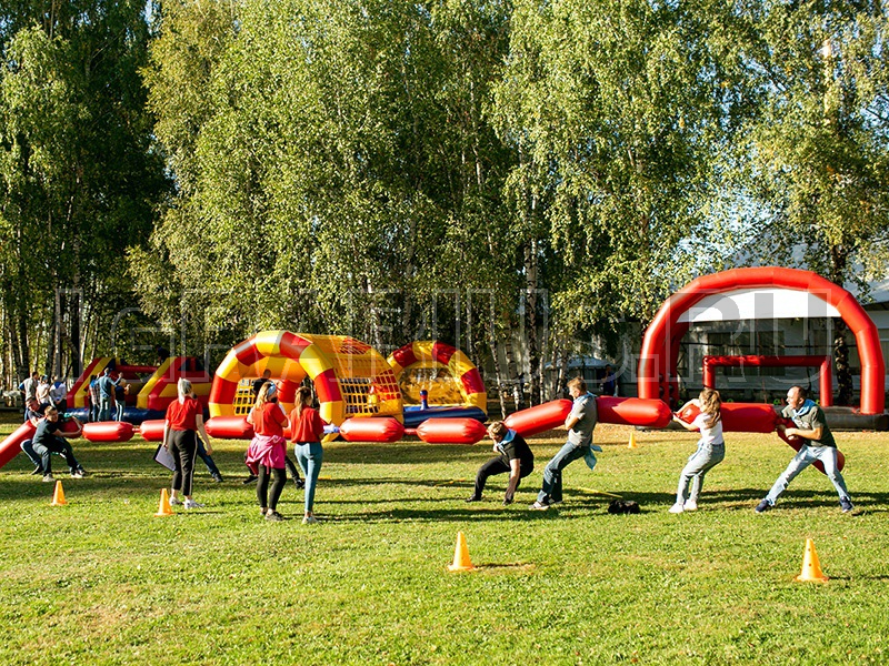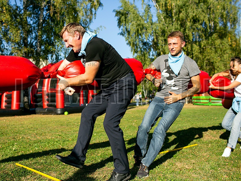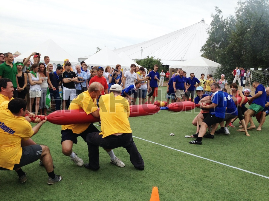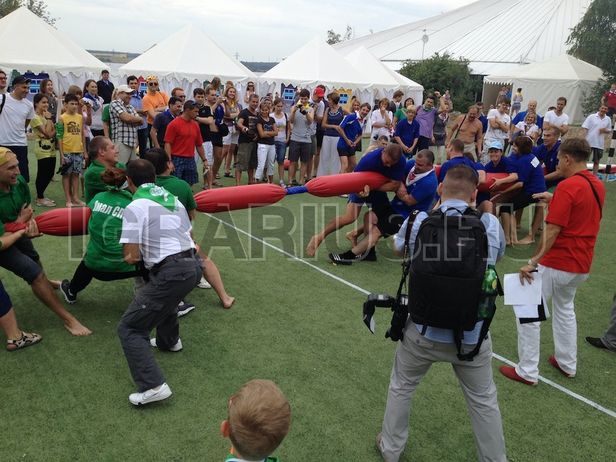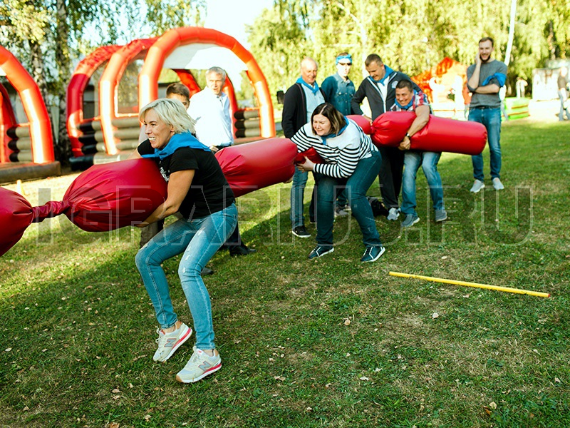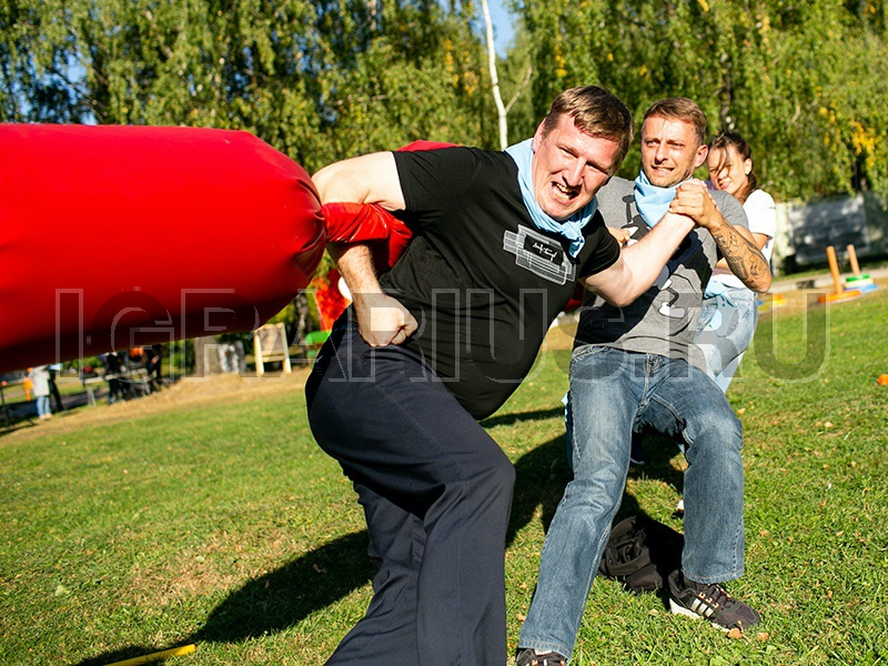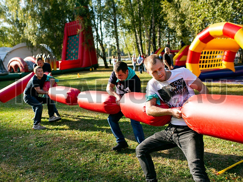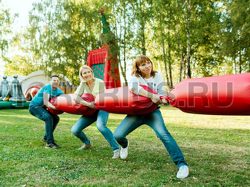 Аналог знаменитой русской забавы: перетягивание каната. Отлично подойдет для финальных баталий Вашего командного мероприятия. Главное в этом аттракционе как и везде: сила, слаженность работы команды и техника безопасности.