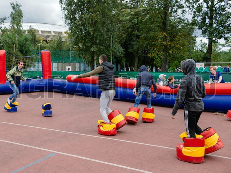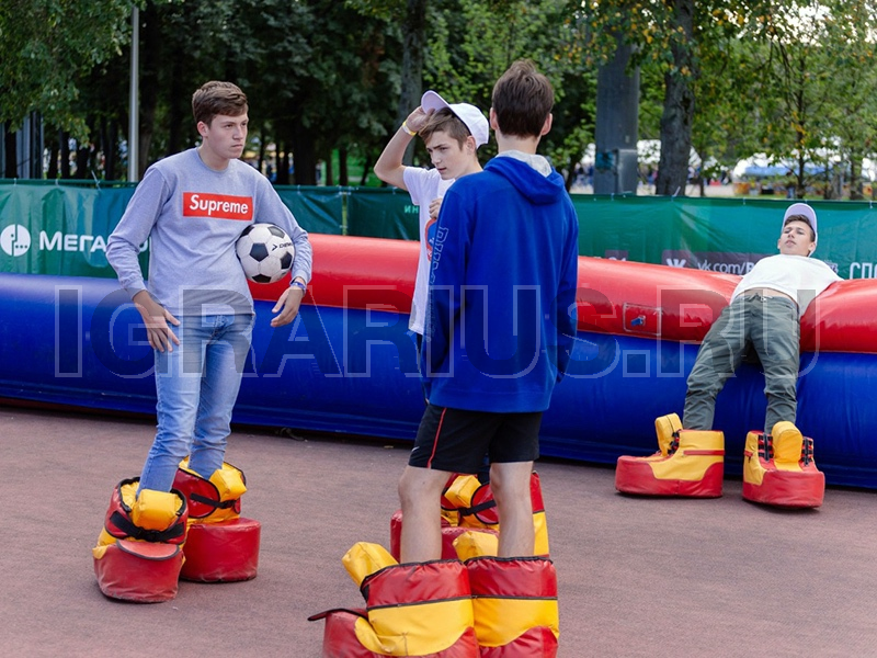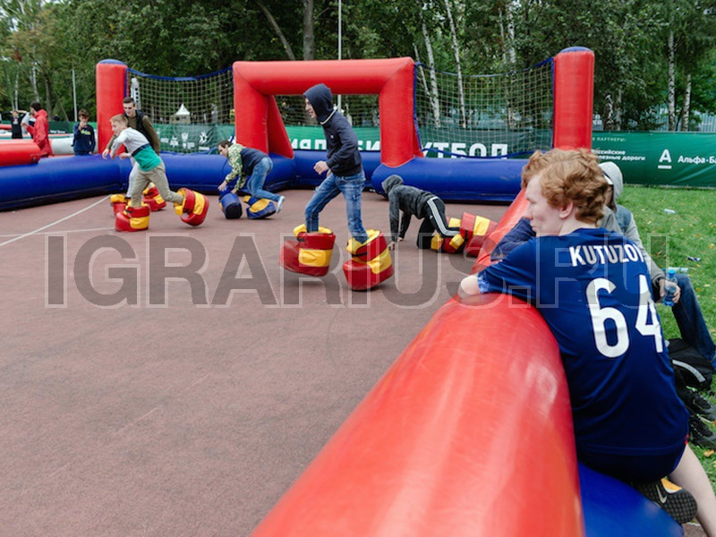 Захватывающая игра в футбол в гигантских ботинках принимает комический акцент, так как игроки становятся неуклюжими и смешными. Для удобства зрителей и игроков мы оборудуем футбольную площадку пневматическим ограждением с сеткой размером 20х10м. Количество игроков в одной команде может быть до 10 человек, ботинок хватит на всех! Играем в футбол во всех его проявлениях: Любите футбол, Играйте в Футбол!!! Корпоративный турнир по ботоболу, станет настоящим хитом соцсетей!!!
