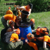 Основная сложность этого командного аттракциона в том, что бочке есть множество отверстий, и пока один из участников команды носит воду - остальные должны любым способом не дать воде убежать, иначе не победить. Тем у кого большие ладони конечно повезло! Так что, собрались с силами, припасли сноровку, и вперед!
