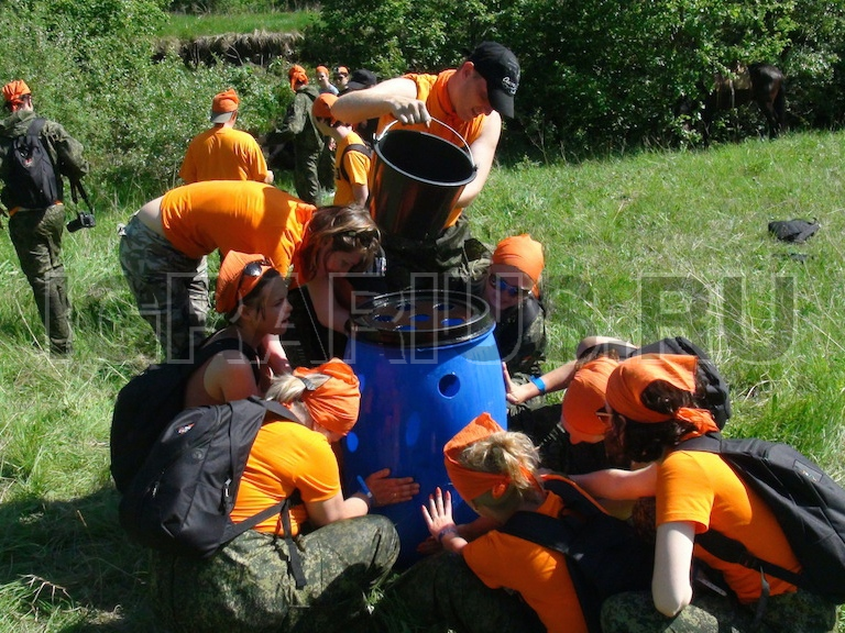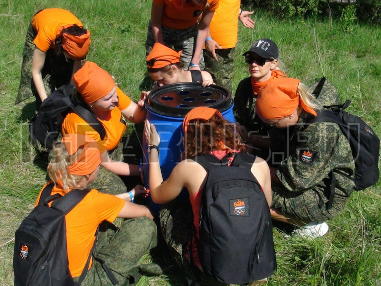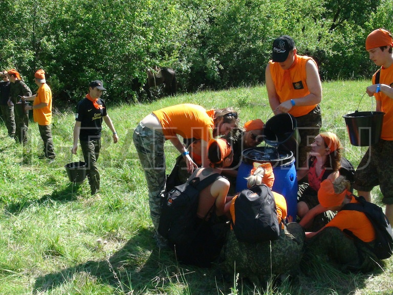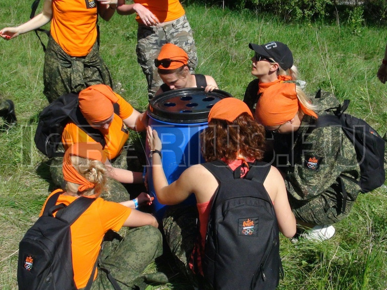 Основная сложность этого командного аттракциона в том, что бочке есть множество отверстий, и пока один из участников команды носит воду - остальные должны любым способом не дать воде убежать, иначе не победить. Тем у кого большие ладони конечно повезло! Так что, собрались с силами, припасли сноровку, и вперед!