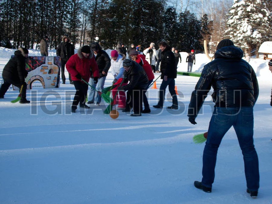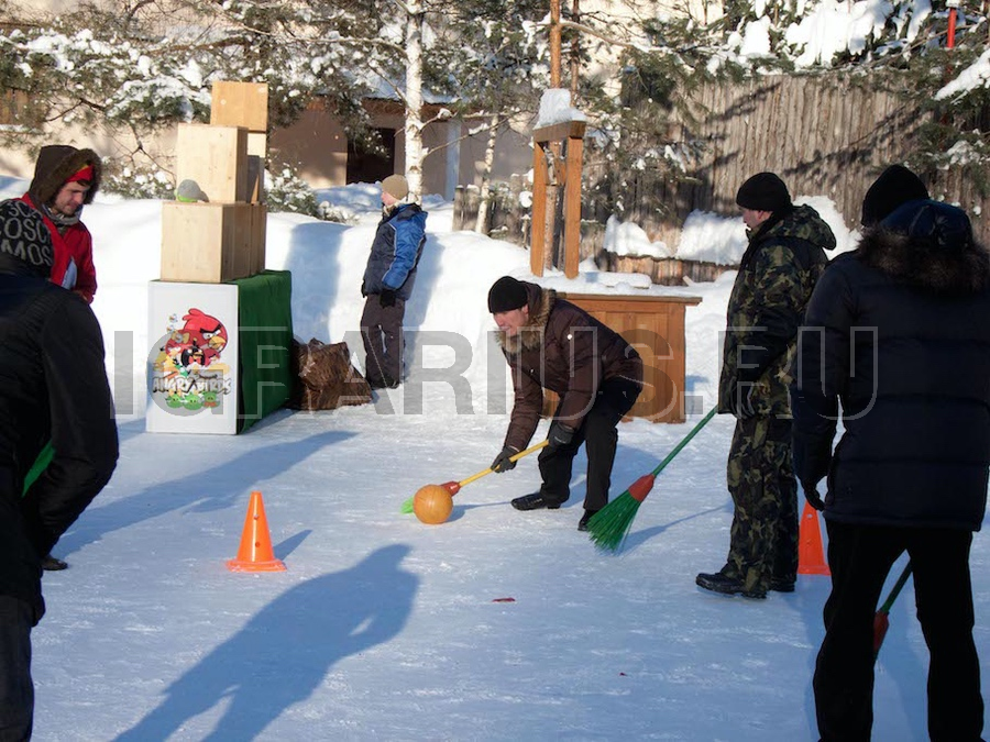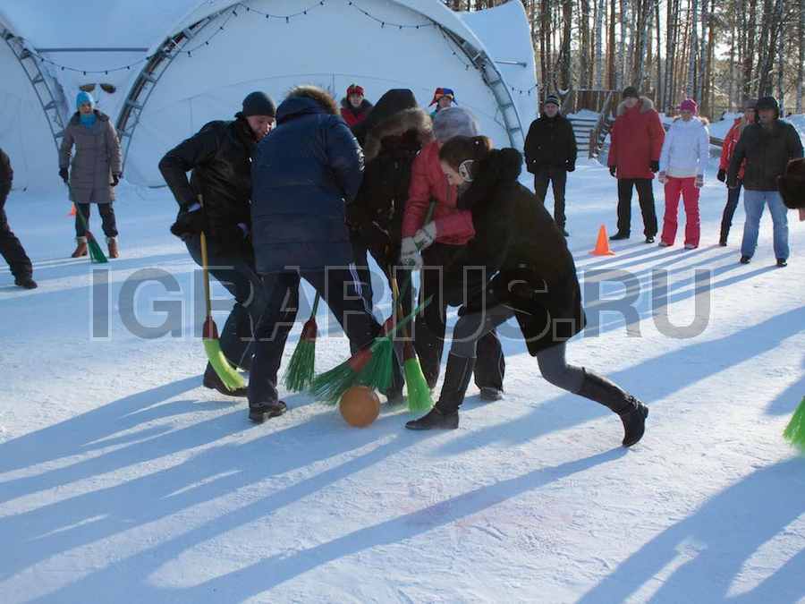Командный аттракцион сочетает в себе целый список развлечений: уборка, хоккей, старинные русские сказки. Все предельно просто и весело: необходимо всего лишь закатить нашего импровизированного колобка в ворота в виде русской печки. Эта командная игра еще больше сплотит Вас с вашими коллегами и друзьями. Веселье, азарт, спортивная интрига – все это основные составляющие хорошей игры.