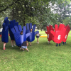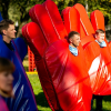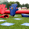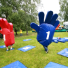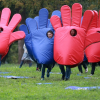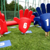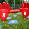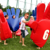 Веселый эстафетный конкурс, который занял почетное место в нашей Славянской программе по TeamBuilding. Эту эстафету мы подсмотрели у знаменитого Такеши Китано и сделали ее в России, специально для Ваших командо-образовательных программ. Пред участниками соревнования поле, на котором расположены мягкие маты с номерами от 1-20, задача игроков одеть на себя костюм Ладошки и по сигналу аниматора настигнуть заявленный номер и прихлопнуть его. В рамках Славянской программы проводится шуточная разминка «Аплодисменты», а так же можно использовать ладошки в эстафете, где участники парой должны принести большой мяч на базу команды.