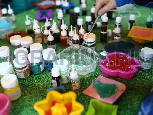 - Мыльная основа (прозрачное глицериновое мыло), готовые цветные плитки мыла или цветные фигурки из мыла.