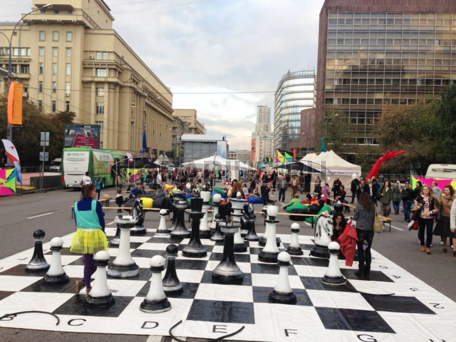Древняя интеллектуальная игра в увеличенном формате, здесь можно «размяться» не только умственно, но и физически не спеша прогуливаясь среди больших шахматных фигур. Можно использовать как антураж для мероприятия в стиле «Алиса в стране чудес» или устроить самые настоящие шахматные баталии среди гроссмейстеров и при большом скоплении зрителей.