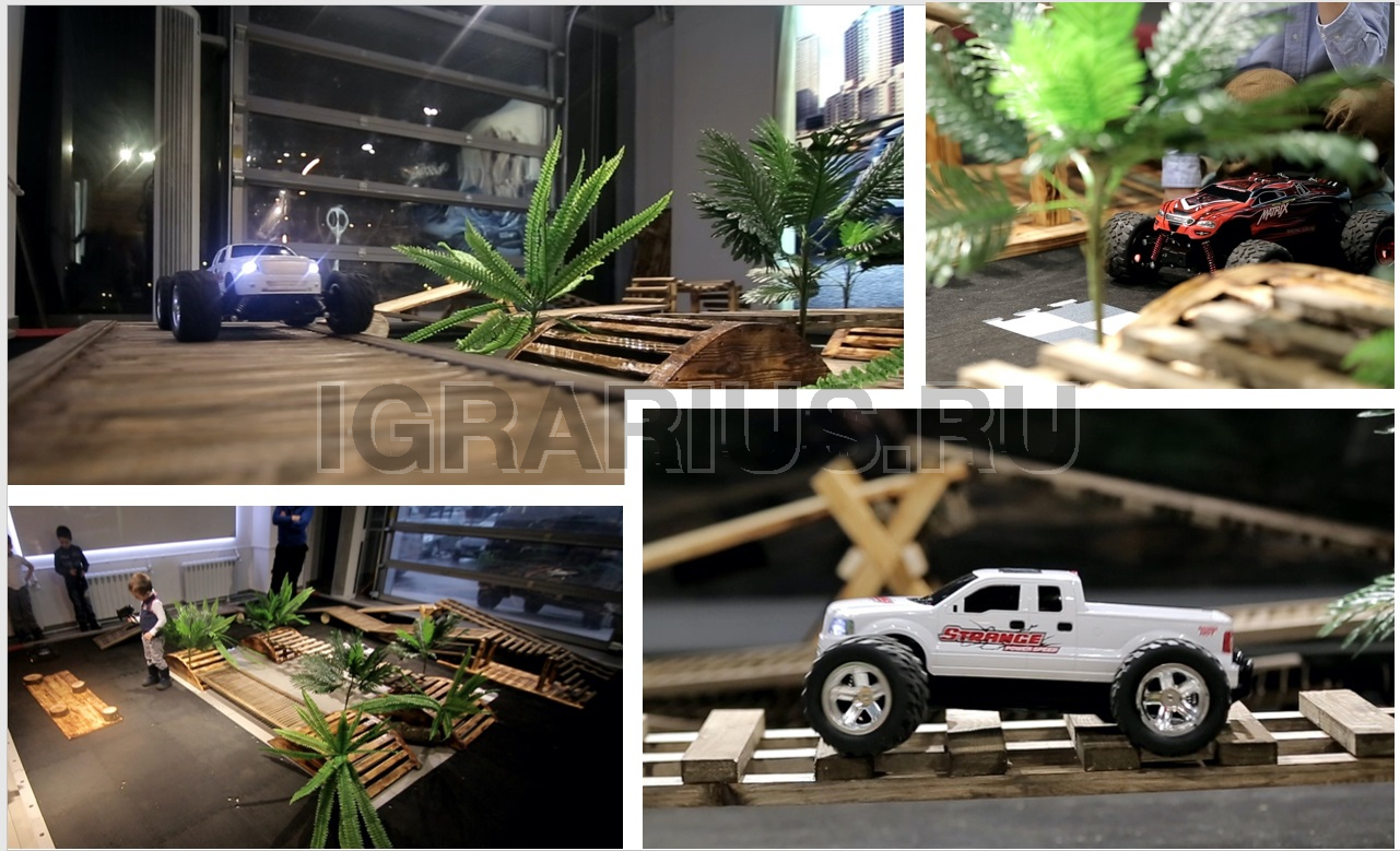 ПОЛОСА ПРЕПЯТСТВИЙ ДЛЯ РАДИОУПРАВЛЯЕМЫХ ДЖИПОВ РАЗМЕРЫ ОТ 6 Х 4 МЕТРОВ с 4-мя ДЖИПАМИ.