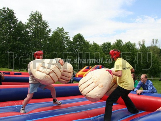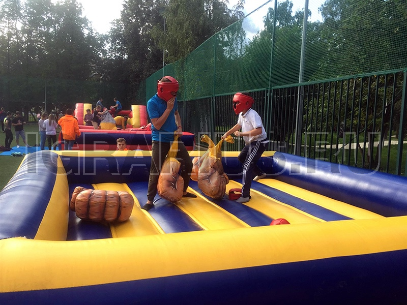 Издавна на Руси уважали кулачные бои, особенно на праздниках. Именно это занятие считалось хорошим видом отдыха для снятия стресса. Вы сможете выпустить пар, и безобидно померятся силами со своими коллегами по работе. Бой проводится на специальном надувном ринге. Итак, надеваем кулаки - получаем тумаки! Аттракцион «кулачные бои» является отличным стрессоснимателем.