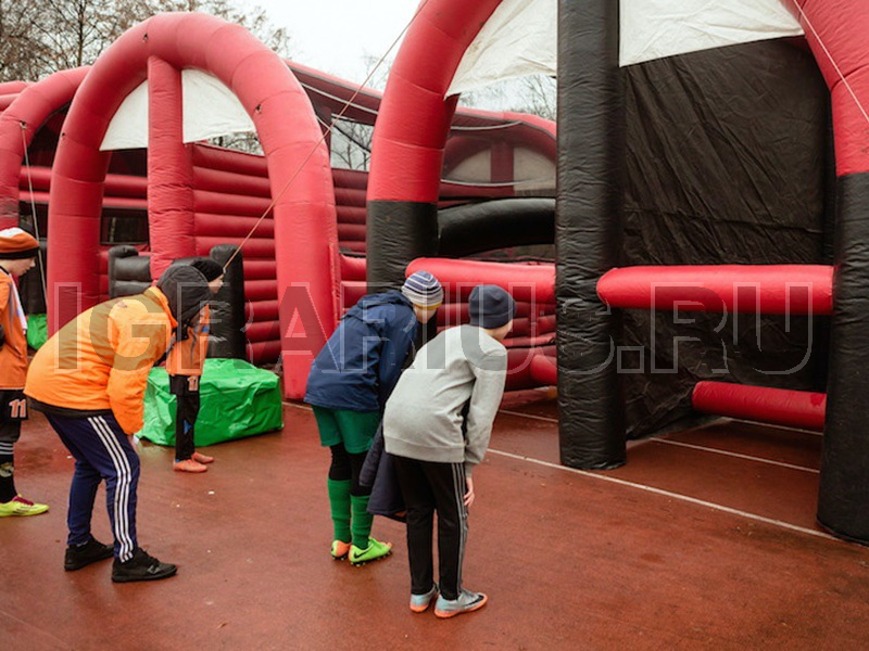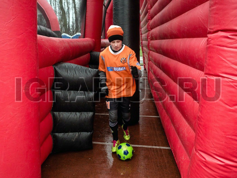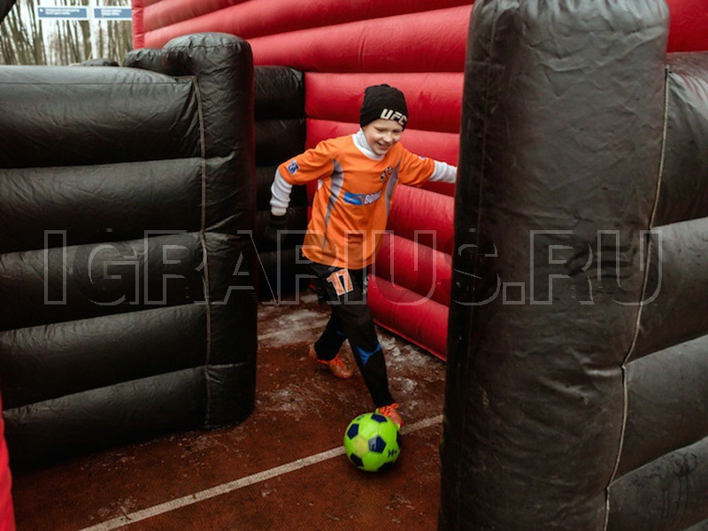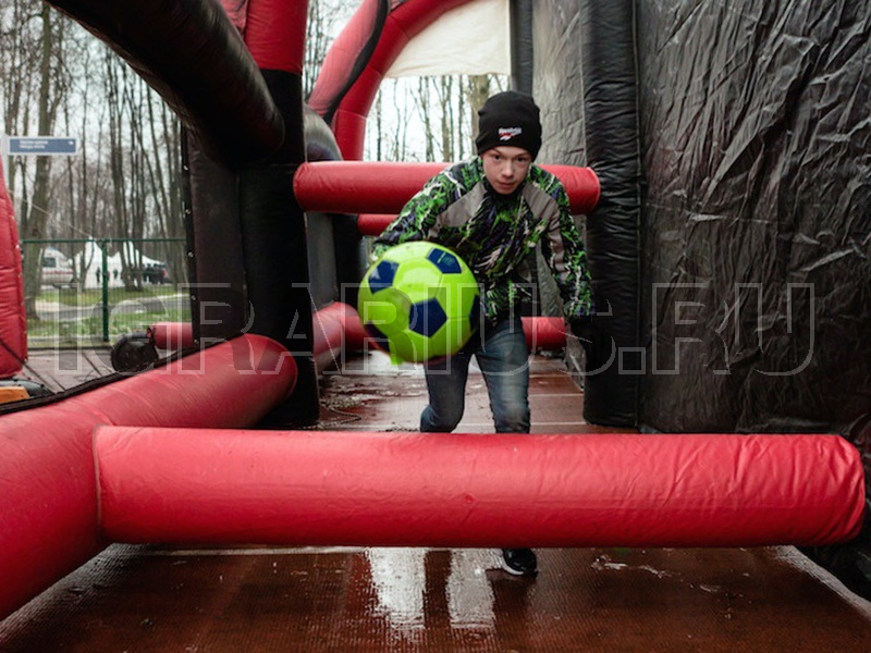 Если вы себя считаете хорошим игроком, то вы с легкостью пройдете это испытание. Необходимо провести мяч через небольшой лабиринт и забить гол в ворота соперника. Сложность данного испытания заключается в том, что отверстие для мяча, чтобы был засчитан гол, находится в определенном месте и попасть в него не так-то просто как кажется. Вторая сложность - время! необходимо пройти испытание за максимально короткое время. Этот аттракцион подходит как для индивидуальных конкурсов, так и для командных!