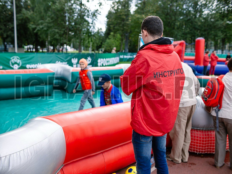 Теперь Вы сможете играть в бильярд, находясь прямо на самом "бильярдном столе". Но это еще не все! Также этот батут мы можем преподнести как "Футбольный бильярд" для настоящих любителей футбола. Здесь можно устаивать и парные зачеты, и настоящие чемпионаты! И все это с учетом непосредственного участия Вас и Ваших коллег в игровом процессе.