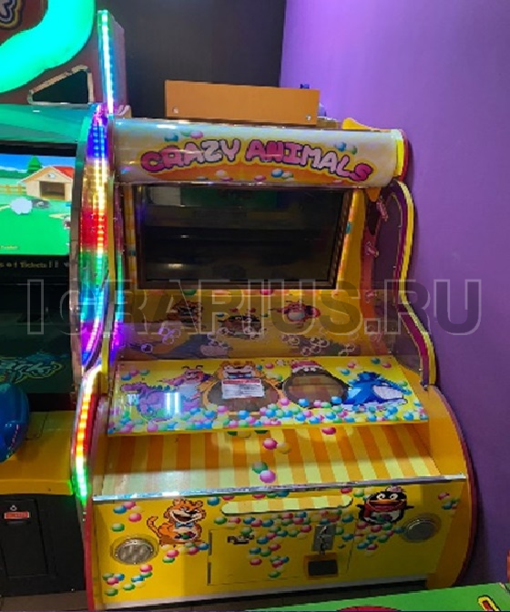 Игрок должен попасть мячиками в мишени в виде забавных животных на интерактивном экране. Выбор из нескольких мини-игр. Монитор 37".