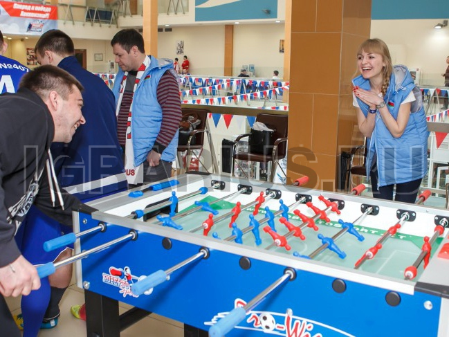 Настольный футбол - одна из популярных футбольных игр, которая по своей энергии и азарту не уступает настоящей игру в футбол. Это развлечение всегда привлекает внимание людей, в нее играют с удовольствием и стар и млад. Мы предлагаем Вам поучавствовать в увлекательных турнирах по настольному футболу, которые наши профессиональные инструктора с радостью организуют для Вашего спортивного или корпоративного мероприятия.
