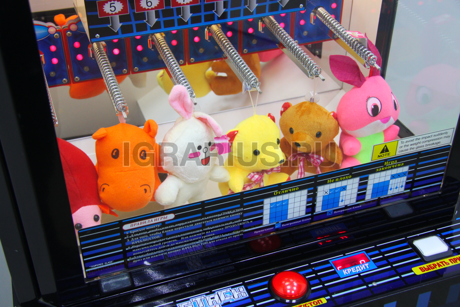 После старта игры, игрок должен складывать горизонтально движущиеся блоки друг на друга. Постепенно, по мере того как игрок успешно выстраивает новый уровень поверх предыдущих блоков, игра постепенно усложняется (блоки движутся всё быстрее и быстрее). Дойдя до отметки “малый приз”, игрок может выбрать один из призов висящих на шести нижних пружинах или продолжить игру с возможностью выигрыша одного из дорогих призов, развешанных на четырех верхних пружинах.