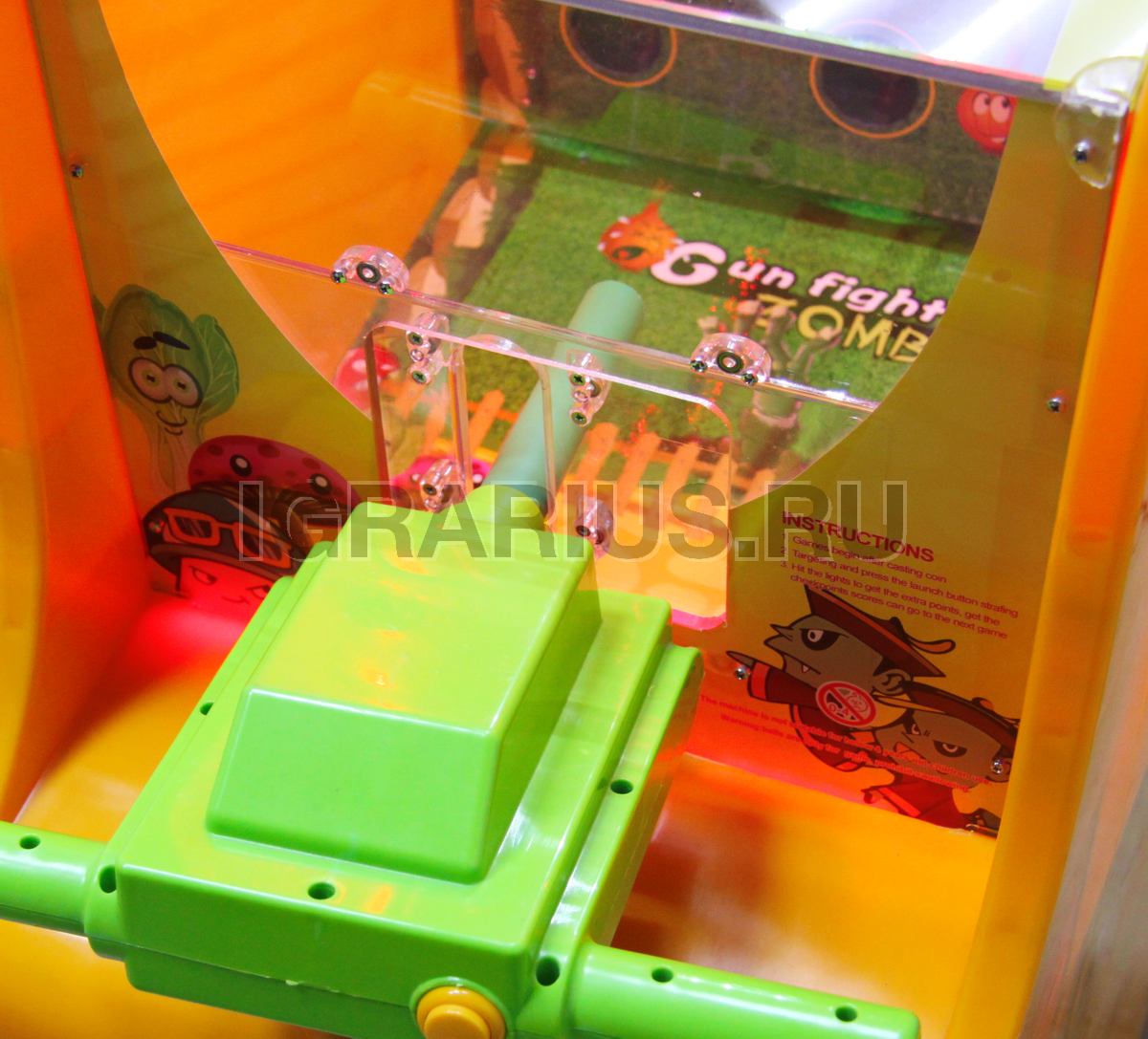 После старта на противоположной стенке начинают загораются окна, в которых находятся зомби. Надо пулями в них попадать. Пулемет стреляет очередью из шариков, тем самым делая аппарат очень веселым. За каждое попадание начисляются очки.