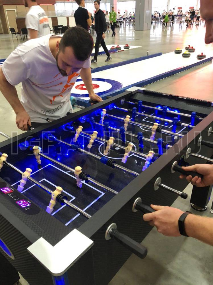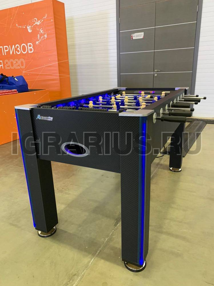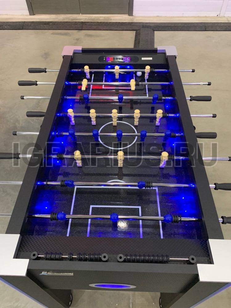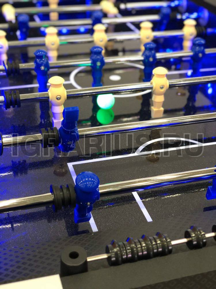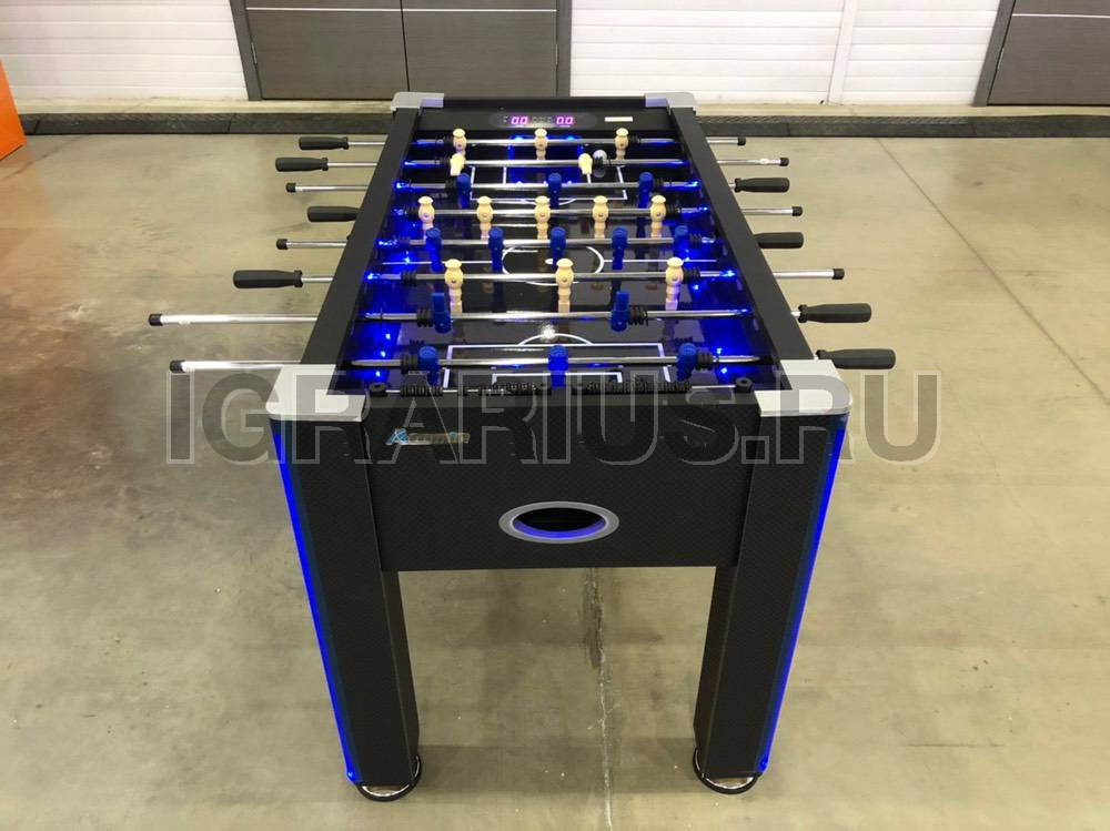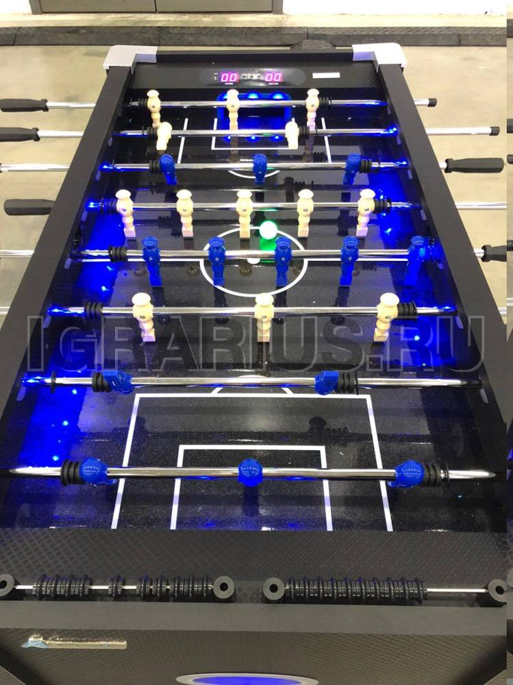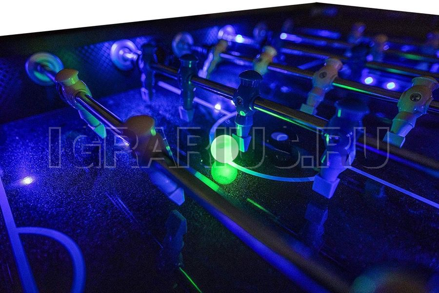 Уникальная модель настольного кикер футбола со светодиодной подсветкой игрового поля и ног. В полной темноте стол создает космическую, фантастическую атмосферу. Кикер увлекает звуковым сопровождением игры, а электронный счетчик с сенсорным управлением и LED подсветкой помогает отслеживать ход игры. Аттракцион никому не даст соскучиться, так как размер стола позволяет устраивать сражения двое на двое.
