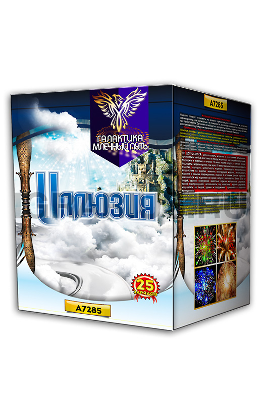 ЭФФЕКТ Красные, зеленые и пурпурные звезды раскрываются золотыми коронами с красными, зелеными и пурпурными звездами на острие, красные звезды раскрываются золотыми кокосами, переходящими в серебряное трещащее мерцание; в финале одновременный залп нескольких зарядов