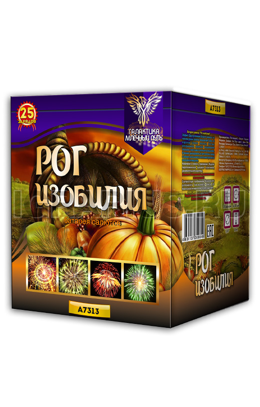 ЭФФЕКТ Двухуровневая батарея салютов: на нижнем уровне золотой мерцающий бурак, на верхнем уровне зеленые звезды раскрываются золотыми мерцающими стрелами с красными и зелеными вспышками. В финале одновременный залп зеленых звезд с треском раскрывается золотыми стрелами в серебряном мерцании.