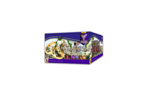 | ЭФФЕКТ | Зеленые звезды раскрываются красными кокосами; красные звезды раскрываются зелеными пионами и серебряными мерцающими ивами; зеленые звезды раскрываются красными пионами; в финале одновременный залп серебряных комет раскрывается серебряными кокосами с красным мерцанием, переходящими в эффект тысячи трещащих хризантем. |