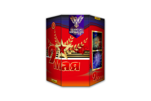 | ЭФФЕКТ | Красные звезды раскрываются красными волнамив серебряных мерцающих пионах; зеленые звезды раскрываются пурпурными георгинами в зеленых пионах; синие звезды раскрываются серебряными кокосами с красными жемчужинами; в финале одновременный залп синих звезд раскрывается золотыми мерцающими стрелами. |