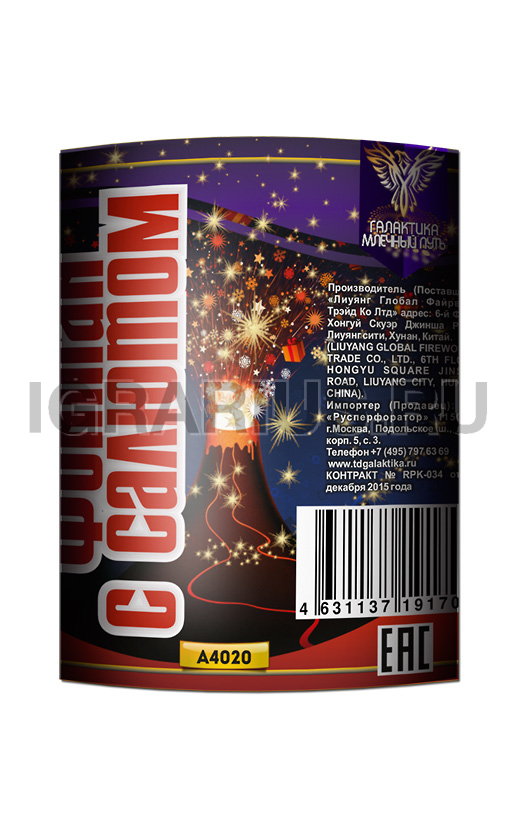 ЭФФЕКТ фонтан - поток золотых искр с зелеными и красными звездами. Высотный эффект: золотые трещащие кометы, со звездами на острие.