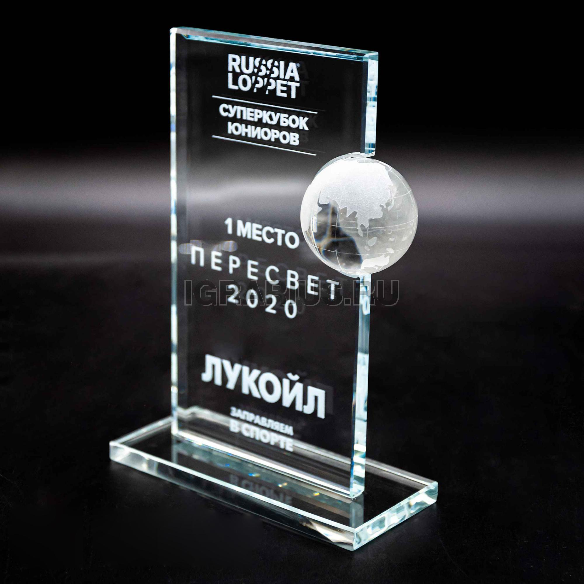 Награда из стекла. Материал - отбеленное стекло "оптивайт" толщиной 10 мм. Возможно изменение размера или формы. По желанию клиента можно изготовить стеклянную награду толщиной 6, 8, 10, 12 мм, либо из зеленого стекла. Также можно приобрести заготовки наград без нанесения.