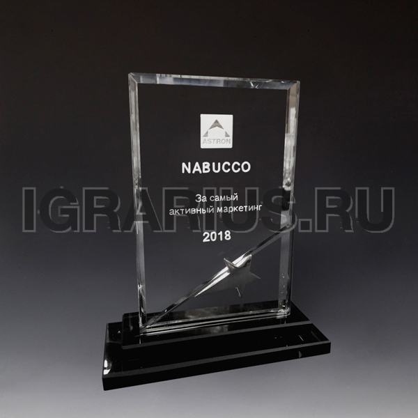 Награда из стекла. Материал - отбеленное стекло "оптивайт" толщиной 10 мм. Возможно изменение размера или формы. По желанию клиента можно изготовить стеклянную награду толщиной 6, 8, 10, 12 мм, либо из зеленого стекла.  Также можно приобрести заготовки наград без нанесения.
