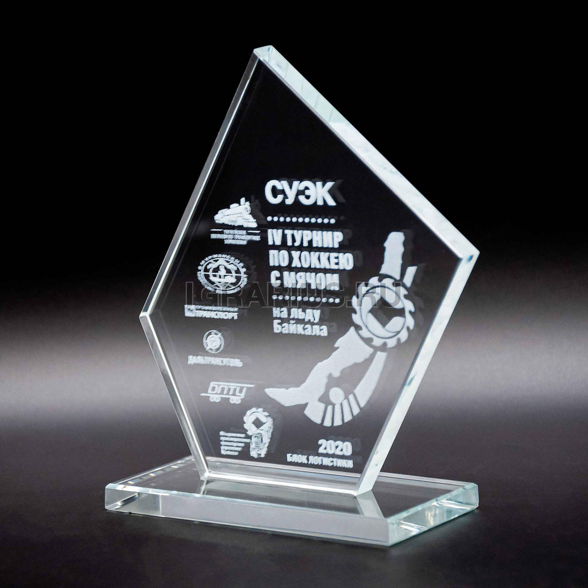 Награда из стекла. Материал - отбеленное стекло "оптивайт" толщиной 10 мм. Возможно изменение размера или формы. По желанию клиента можно изготовить стеклянную награду толщиной 6, 8, 10, 12 мм, либо из зеленого стекла.  Также можно приобрести заготовки наград без нанесения.
