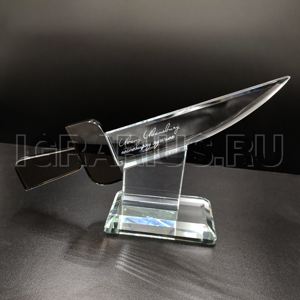 Награда из стекла. Материал - отбеленное стекло "оптивайт" толщиной 10 мм. Возможно изменение размера или формы. По желанию клиента можно изготовить стеклянную награду толщиной 6, 8, 10, 12 мм, либо из зеленого стекла.  Также можно приобрести заготовки наград без нанесения.