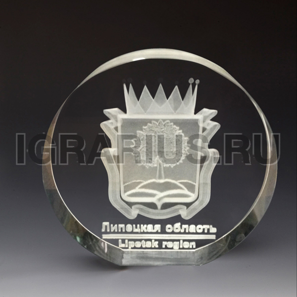 Приз из стекла арт. V001C. Подходит для объемной 3д гравировки внутри стекла. Может быть элементом сложной награды.