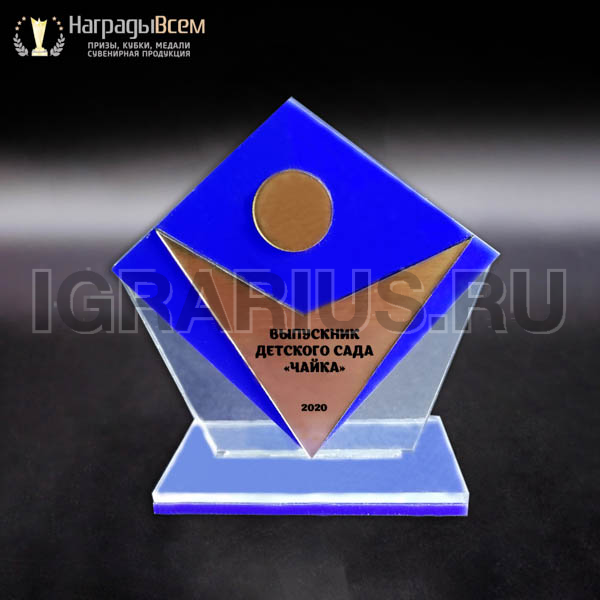 Награда из цветного акрила с двумя слоями и с цветным пластиком (золото/серебро/бронза) станет: